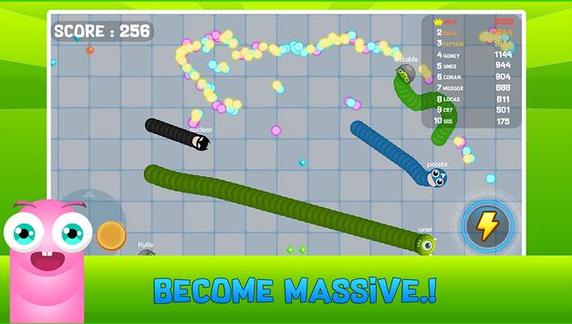 Be careful : if your head touches another snake, you will burst and then you will turn into food. But if you bring other snakes to run into you, then they will explode and they will turn into food, then you can eat them!