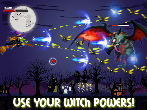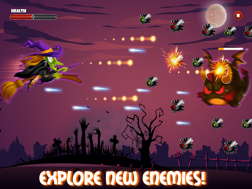 Witch's hat has the power to foresee the future and broom will take you to the heights of the sky. Her magic potions can summon the dead. Zombies, werewolves, and bats are secret forces. Join them all and bring glory. Hunt down the ghosts, dragons, and vampires. Maximum kills will unlock challenging missions. Ahaa and her magic wand will cast the strongest magic for you.