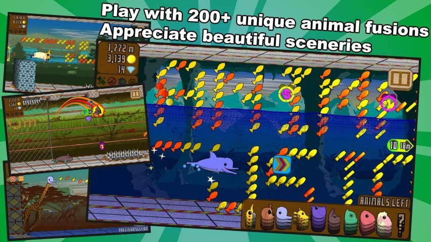 ★ Animal Fusion is a unique endless runner where you play as an animal that is always anxiously looking towards the next animal fusion it will become. So do not let the next bodypart fly away from you and be sure to collect it as quick as possible!