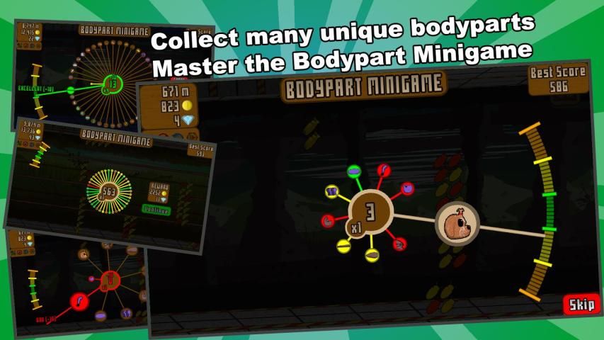 ★ Dodge obstacles and avoid spikes to keep going forward, because the cage is always ready to capture you! Always keep an eye on the next bodypart to be collected, do not get too far from it nor let the time run out, otherwise I am afraid you will EXPLODE!!
