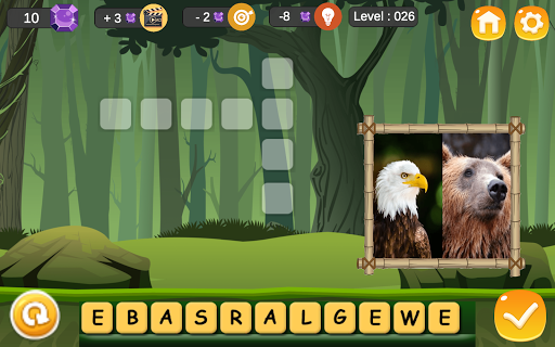 It has a scrabbling approach where letters are made available in tiles randomly shuffled in a tile rack and all we have to do is to drag those tiles on the specific spot to form the word of the animal being display in the frame.