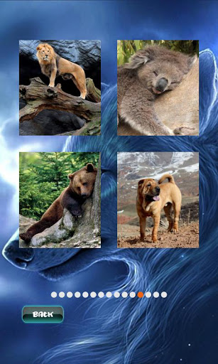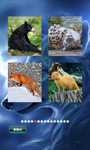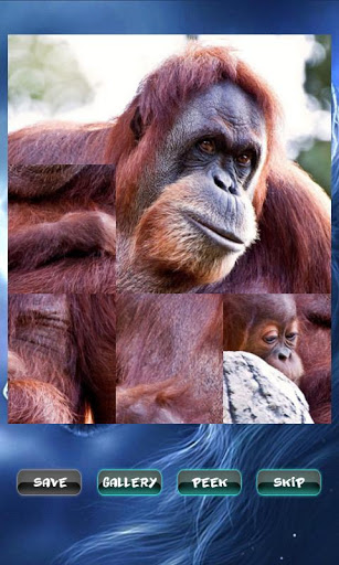 Enjoy of high quality images. The game contains 60 levels with beautiful animals pictures. You will find bear, cat, dog, eagle, fox, horse, kangaroo, koala, leopard, lion, monkey, tiger, turtle, wolf, zebra and more. Drag the pieces to the right place to create the image. Use "Peek" button to preview the original image. Completed levels will be unlocked and you can save images to SD-card. If you can not complete any level you can simple skip it and try to complete it later. Just press "Skip" level button.