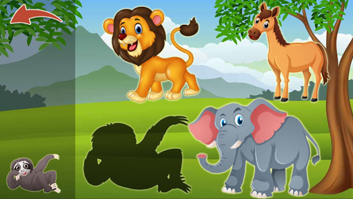 - Touch the screen and drag the animals on the right shadow