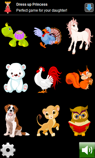 - In the gallery mode child learns how to look like different animals, as they are called and what sound they are made.