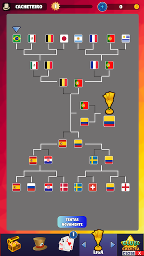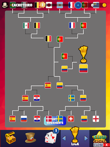 - Play the cacheta league, with characters representing different countries,