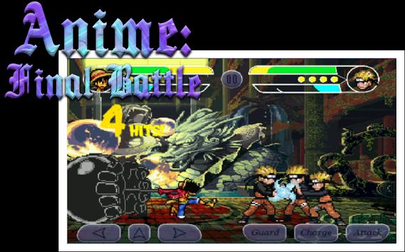 Anime: Final Battle is a real time 2D fighting game with over than 50 heroes and villains from anime and manga who are ready to fight as you wish.