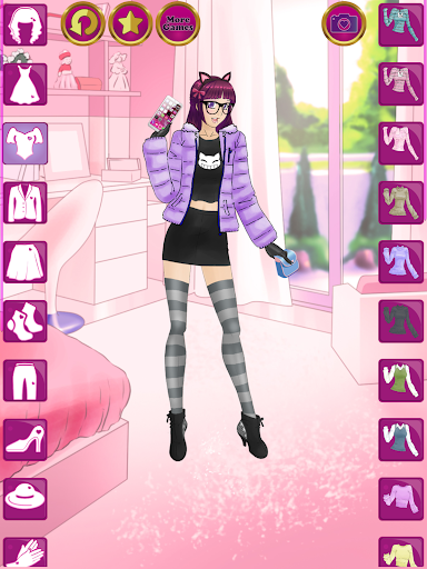 In this makeover game with anime graphics you can design outfits for 6 cute girls. Create a unique outfit for each school girl out of millions possible from the 240 available clothing items, hairstyles and accessories. Everything in the game is free, there are no in-app purchases, nothing is locked.