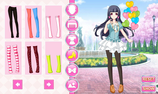 Create your own anime character by dressing and styling her. Explore kawaii style to make your character unique. You'll get to dress her by choosing clothes and accessories. There are so many options to choose from that you can spend hours just making new outfits for your anime character. When you're done getting dressed, go out to the park, bakery, and more for a fun day outdoors!