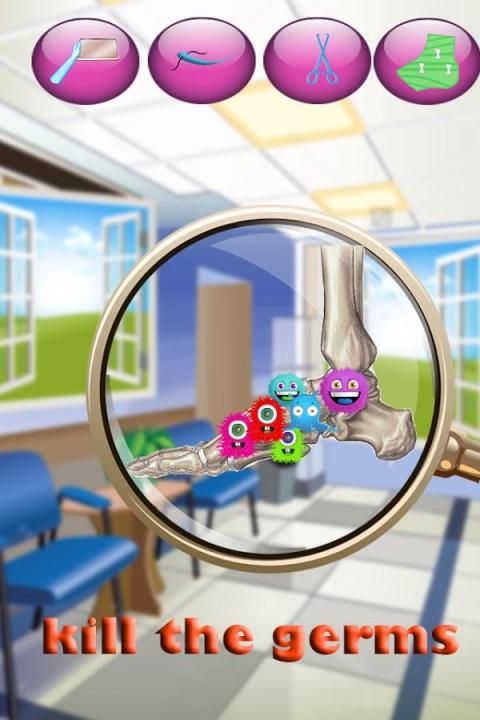 In Ankle Surgery you get to perform surgery like a doctor on patients with broken ankles.