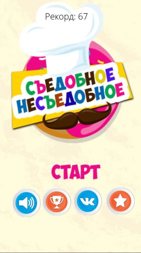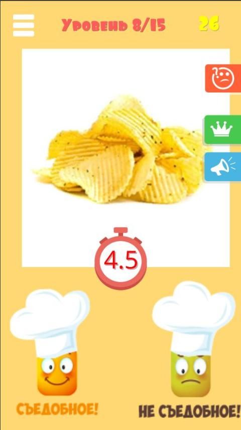 Съедобное и несъедобное по новому. Вам надо угадать что съедобно, а что нет. Фишка в том, что кнопки меняются местами, чтобы было сложнее играть. Есть разные уровни 10 секунд, 7 секунд, 5, 3 и даже 2 секунды на ответ!!!
