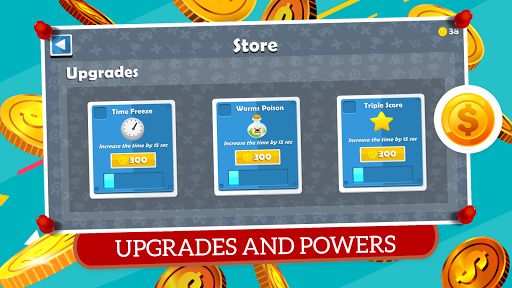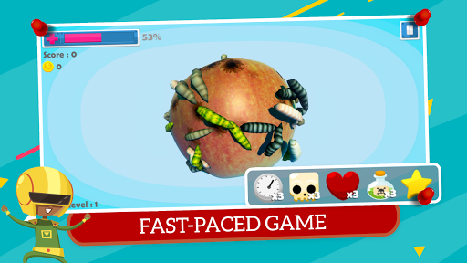 The game is simple to play but you can also customize it with a lot of fun features. The store that comes up when you first start the game gives you options to make this idle game more fun and enjoyable. You can get a number of exciting powerups to aid you throughout the game. You can even get several unique skins to dress up the game with. Furthermore, it is even possible to remove ads in the game with just a little added cost! No hassle! So get your worm kill mode on and kill all worms to save the apple!