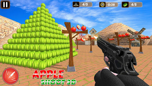 This fruits shooting game is one of the best quality products for the summer vacations amusement programs. So must download and carry out your summer vacation deals. Be careful in the survival mode, never try to hit the lady standing with watermelons and apples in front your real targets because this is not a lady shooter game. If you shoot down the lady you will be lost you game mission. So the main goal in survival mode is to rescue the lady from fruits. Smashing these summer fruits that is watermelon and apple with pistols in hand creates really much fun and the most amusement moments could be seen when bullets hit hard to the soft watermelons and apples and cuts into pieces.