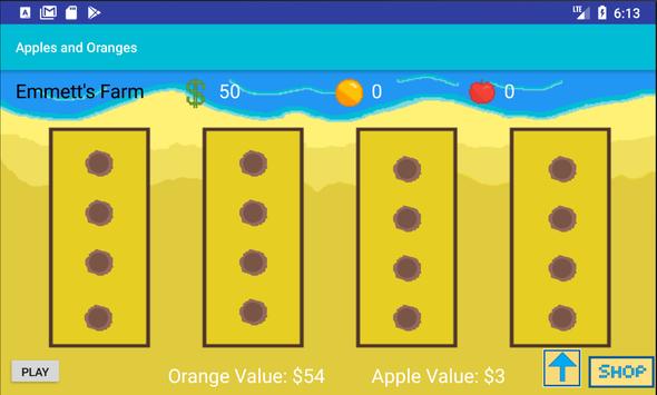 Apples and Oranges is a farming game made by two high school students that uses stock prices to add a challenge. The game is simple and easy to navigate, and it has upgrades such as buying more trees or earning more apples.