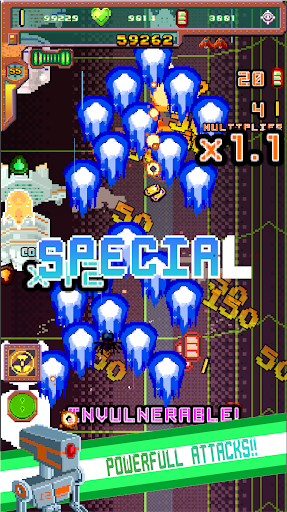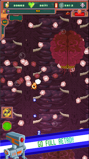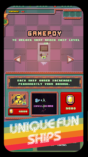 Destroy Arcade invaders and gather coins to upgrade your weapons. Have a coampletely retro feel with this pixelated shoot'em up. Just the toughest will be able to handle the 100 waves and beat the bosses.