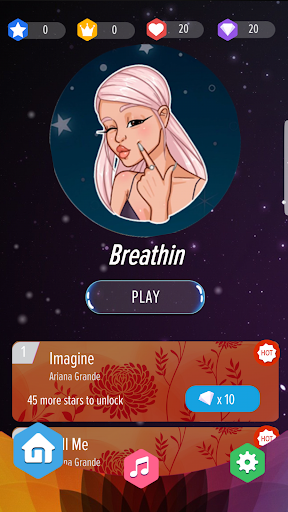 Ariana Grande - Piano Tiles DJ is the best piano tiles ,you can play the most popular song of Ariana Grande like "Breathin" , "Imagine", "Tell me" ,"Rings" , "Don't start now" and more.