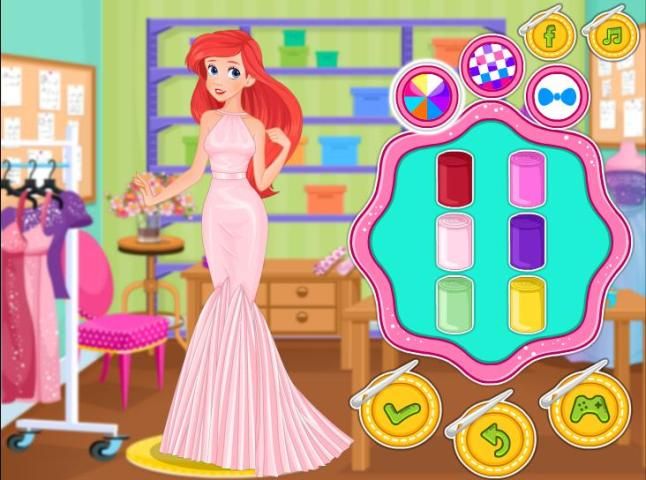 Ariel Mermaid Dress Design will design a wedding dress for her friend, now help her choose a wedding dress style and then make the dress. Finally help her dress up and see how beautiful the dress is. Have fun!