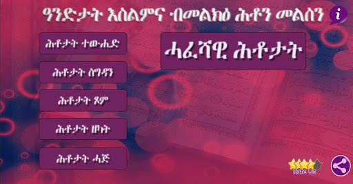 arkan al islam Quiz in Tigrigna is question and answer app that can challenge your knowledge of Your Islam (Din) . That’s included different types of question like multiplication choices , true and false questions and groups challenge up to 8 players .The questions are based on Arkanul Islam from Tewhid, Selah , Siyam ,Zekah and Hajj.