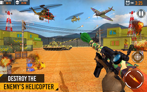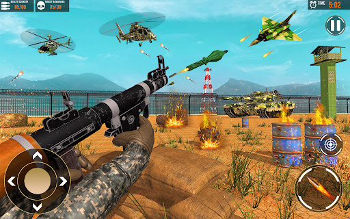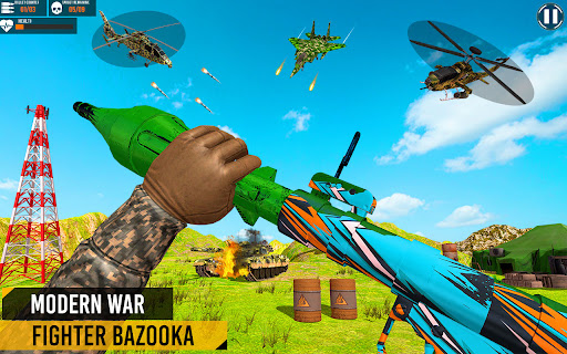Try one the best and new type of action 3D game Army Bazooka Rocket Launcher: Shooting games 2020. An intense shooting game that will blow your mind away. In this action pack game shoot down enemy helicopter and fighter jet with Super Rocket launchers & Bazookas with unlimited ammunition. A new thrilling war pack waiting for you. Get the real experience of war zone attack on enemy with the help of rocket launcher and bazooka. Destroy your enemies and clear all the hurdles.