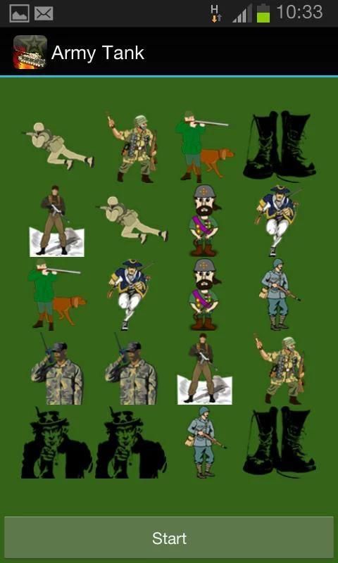 The Match Game is a real soldier games battle, testing your memory as you try to outsmart the computer. Try and remember where all the tank cards are hidden. Tap one card to flip it, and then tap where you think the matching card is. If you get it wrong, the cards will be hidden again. There are two themes to choose from – either the tank theme, or the soldier theme.