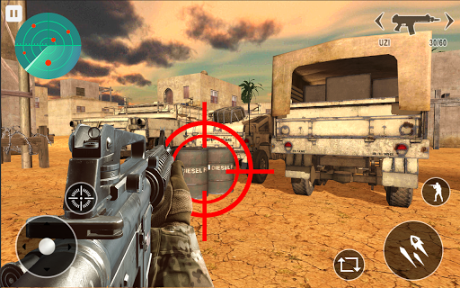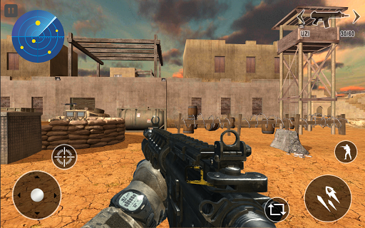 There are multiple enemy attack on the go and player can take cover by hiding himself/herself behind the walls and pros. Free Shooting war game with a lot of modern guns , counter attack the enemy and get it before they shoot out you. be pro active , take perfect shoot, zoom out and press the trigger , turnaround and strike back the enemy , take RPG post on the roof top,
