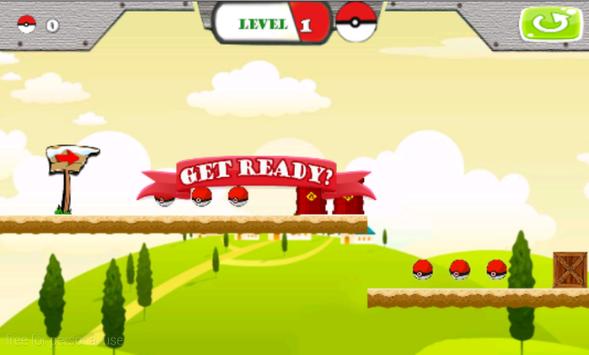 Ash is a pokemon hunter, using pokeball he caught and put it into the Pokédex. So Ash must first collect pokeball. He run and jump over obstacles to collect as many points. Be careful with the obstacles, because you will repeat the game if you fail.