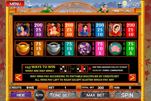 Asian Beauty Slot features five reels and 243 schemes for payments. Its advantages include: