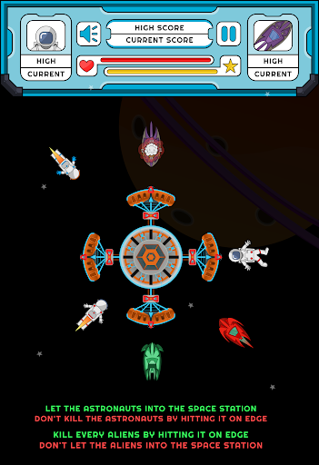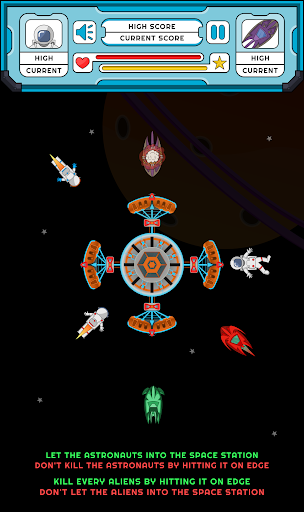 Astrolien, It is the Space Station where we can save the Astronauts from the Aliens. Simple rotation based game play, touch and drag anywhere in the display to rotate the space station - This is one of the best Arcade Space Game in Space Games.