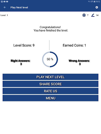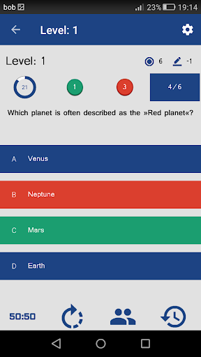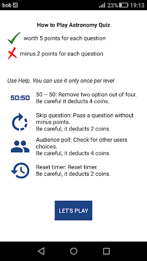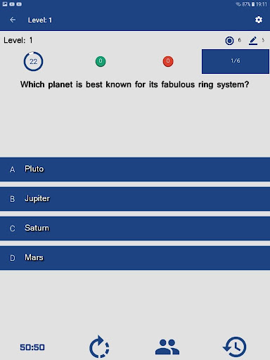 The Astronomy Quiz Game provides some tools to help you inside the game such as 50:50, Skip question, Audience poll and Reset timer.