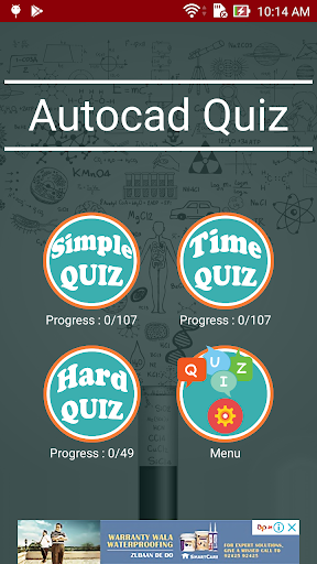 Using this Autocad Quiz game learn, spend some free time with it, have fun playing it. It has 3 types which is simple quiz, time quiz and hard quiz.