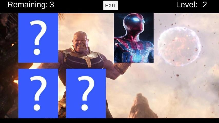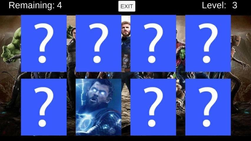 You have to memorize and select the two cards that contain the same avenger, if you do it right you may reach level 20 ..