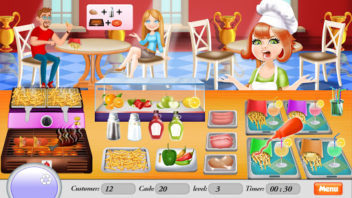 World class chef start your day with firing up multiple grill stove and prepare ingredients for grilled food recipes. BBQ season is on throughout the year even its summer or winter vacation so be ready for customers. Provide yummiest dishes with amazing sauces and spices and best service for exciting story making. Cook, bake and grill meat steak , chicken wings grilling, sausages and veggies. In this food court simulator customer can also give sides orders like fresh juices, desserts and extra toppings for satisfying craving. As levels proceed the game play becomes more and more challenging due to less time and more customers, so don’t get hyper or get scramble in the grill stand and work like an pro manager to complete hungry customers’ orders.