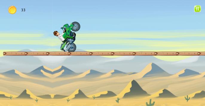 Ben 10 Racing Moto is a fast paced racing game. You never dare drive so fast in the real world! Control your moto with incredible fast speed during traffic rush time! Also enjoy beautiful view during the journey - desert, city, bridge, jungle and forest!