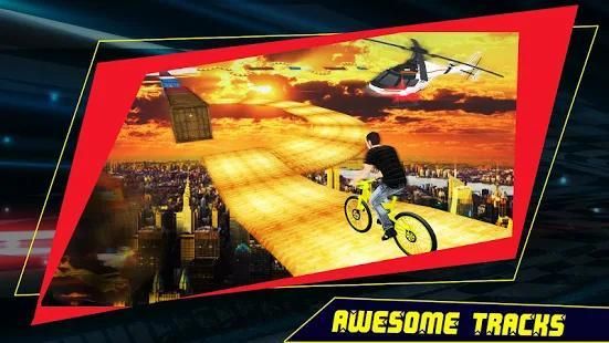 is with high speed with big jumps. MTB bike to perform bunny hops and flips bike suspensions to perform tricky stunts. Crazy bicycle rider to ride on most dangerous tracks to perform 3D stunts.