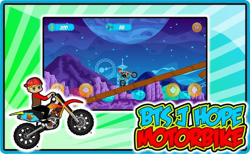 BTS J Hope Motorbike Adventure is a motobike game for fans of Korean idol groups. This is a motorbike game for android. enjoy with our game and do some cool move with BTS J-Hope and their bikes.