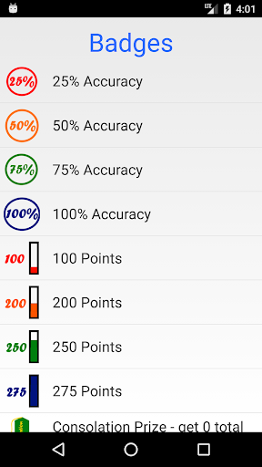 Players have a maximum of 30 seconds to make a guess. Each time an incorrect guess is made five seconds is removed from the countdown timer. A point is rewarded for every second remaining on the timer when the correct language is chosen. A maximum of three guesses can be attempted for each question. 9 reward badges to collect.