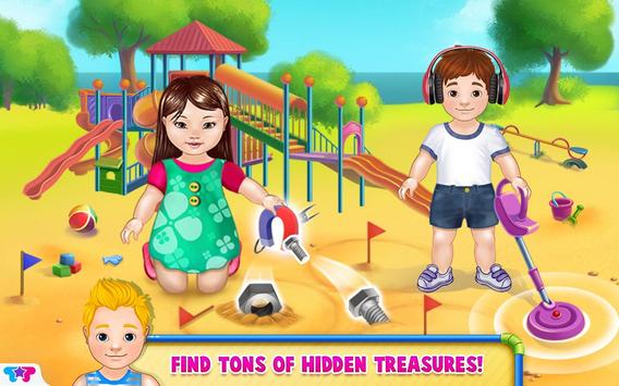 Welcome to Baby Playground, packed with tons of interactive, creative and fun-filled activities! Fix up and build the playground with professional tools, so all your friends can play! Plant a beautiful garden, build a slide, paint Baby playground & more! Get creative! Find hidden treasures with the metal detector and create original recycled art with your findings!