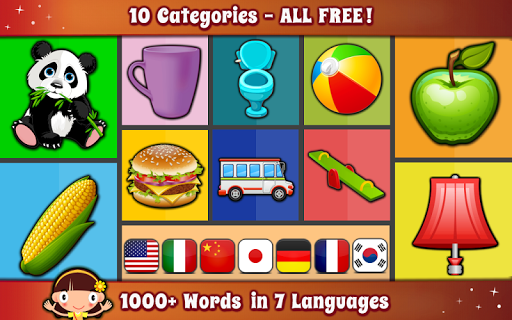 Learning apps for toddlers Baby first words has 150 words in 7 Languages - English, Italian, German, French, Chinese, Korean & Japanese. Baby flashcards will help them to learn everyday objects. First words game for toddlers and learning apps for toddlers