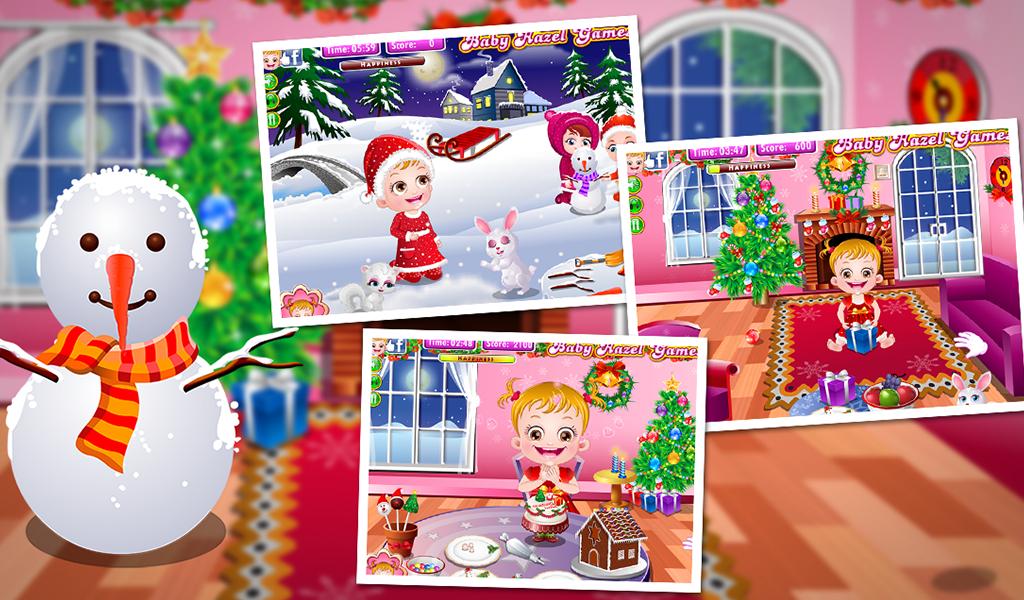 Christmas time is here again. Darling Baby Hazel has thrown a Christmas party for her friends. She is also eagerly waiting for Santa and his gifts. Baby Hazel has lots of activities to complete for the Christmas party before her friends arrive. Help Baby Hazel to decorate Christmas tree and then play with the little kids in the snow. Also help her to make a beautiful Christmas cake and finally join them in their merrymaking on the Christmas night.
