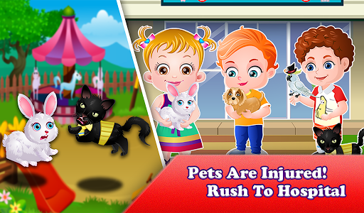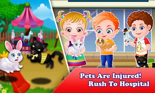 It’s holiday today! Baby Hazel and her friends along with their pets are at the park to enjoy fun rides and games. Oh! But it seems as if pets are not comfortable with each other. They had a petty fight and have scratched each other. Rush to the hospital for medical treatment of pets!