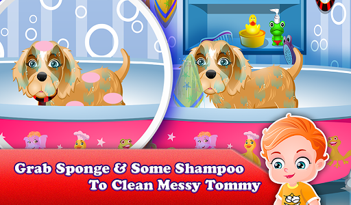 Grab the sponge and soap to bathe Tommy dog