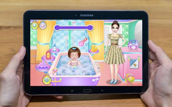 During this girl game, you'll learn many things and for sure you'll experience lovely time with this cute girl. Now, you will go into the bathing part to make sure the girl is clean and all washed out. Use the shampoo to wash her hair then clean the body and don't forget to play a little bit while you are in the bath to distract her from the real action. Accomplish all the steps and move to the playing part where you are going to entertain this girl and make sure she is having a good time. All that remains is to dress her up with a sweet outfit and cute accessories. Put on a dress or the overalls and match to it a pretty bow and nice shoes.You are able to dress the nanny too, so prepare two different style and try to combine them to see if they match. Now with your help, this nanny won't go crazy and you are more responsible and patient. 🛁