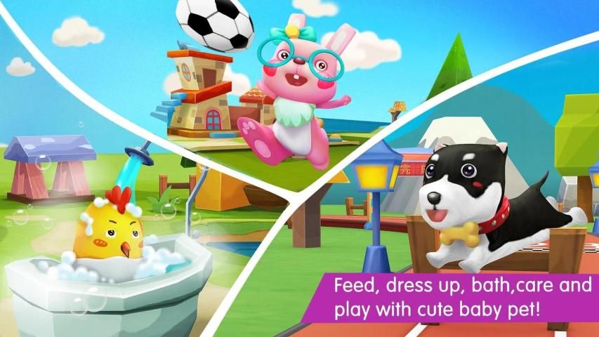 3. Feed, dress up, bath,care and play with cute baby pet! Various cute pets are waiting for your care. Adorable kitten, dog, chicks and more!