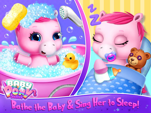 Play Baby Pony Sisters pet care game for girls and boys and travel back in time when kids’ favorite ponies Rainbow, Britney, Molly and Rosie were little baby horses! Take care of your new cute virtual pets: bathe, feed, sing to sleep, change diapers and dress up! Decorate the baby ponies’ room the way you like!