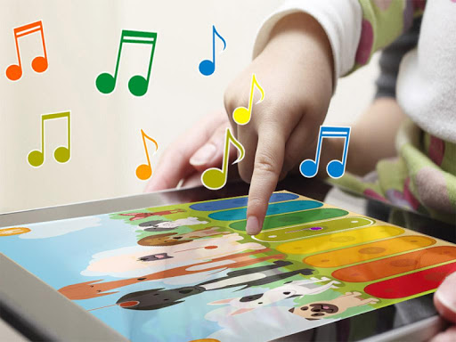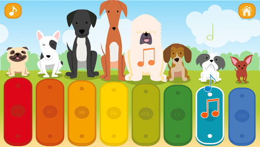 1-Play Xylophone: Babies can play songs accompanied by some funny dogs that will be moved by touching each bar.