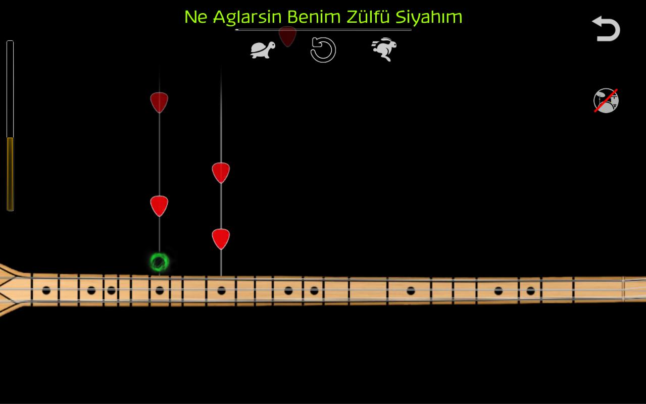 This app provides a nice opportunity to play this instrument by touching the notes at the right time and following the rhythm of the music.
