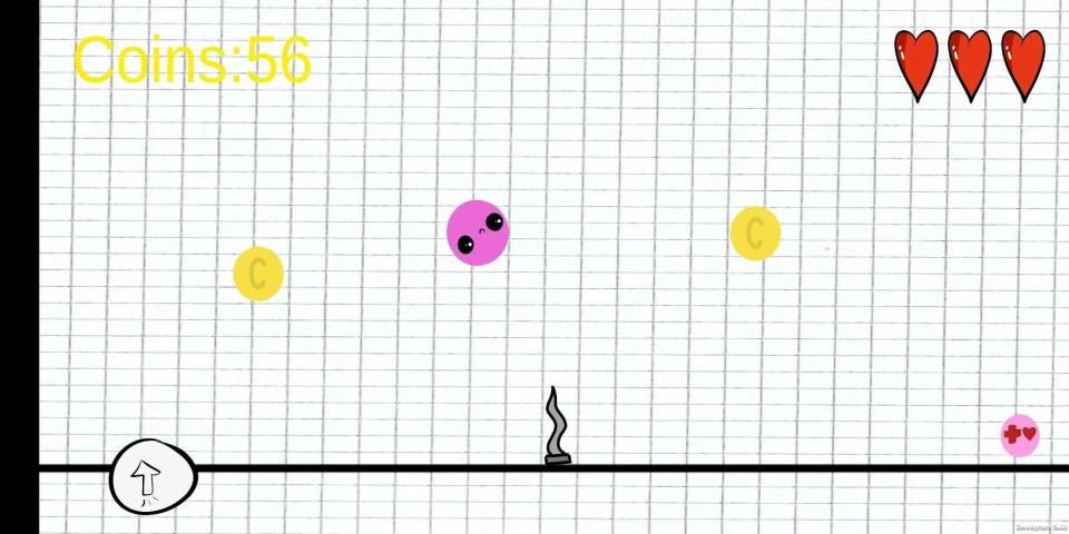 Story of the game: It is math class. Teacher is talking about geometry and shapes. One student was bored, he started drawing in his notebook. When the teacher spoke about circles, the student had an idea. He thought about a game. He took a paper from his notebook and started drawing platforms and circles. Now you are the player of his game.