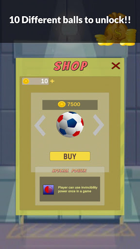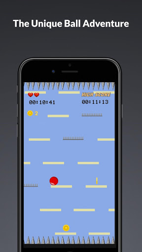 The game is an endless adventure of a ball, where you have to escape the spikes that come along the way and not to get hit by the Spikes that seal you on either sides. The ultimate goal of the game is to set a high score. On the way, never miss to collect the coins which can be used in the shop to buy new balls. Also Collect the lives to get an extra life. At start, you will be given with 2 lives. And you can catch upto maximum of 4 lives. Some balls gives you 3 lives at start and some the ability to catch upto maximum of 5 lives.