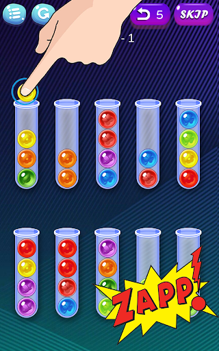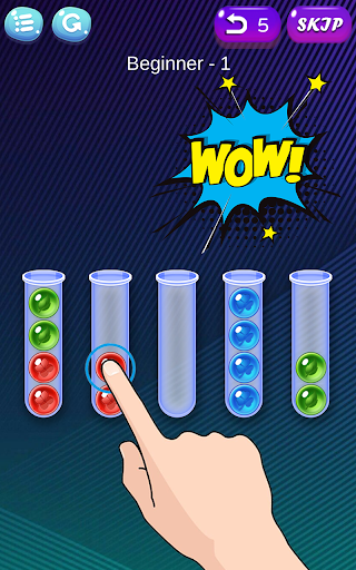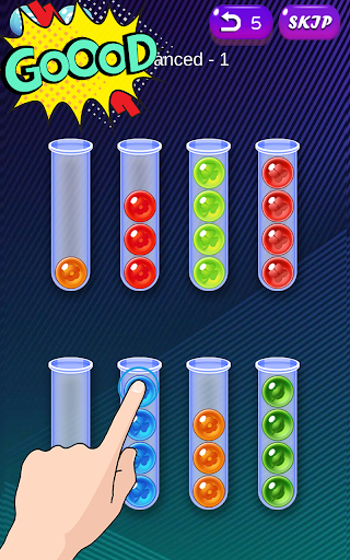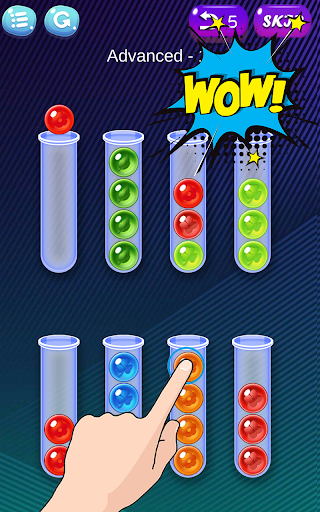 * Tap any tube to move the ball lie on top in the tube to another tube.