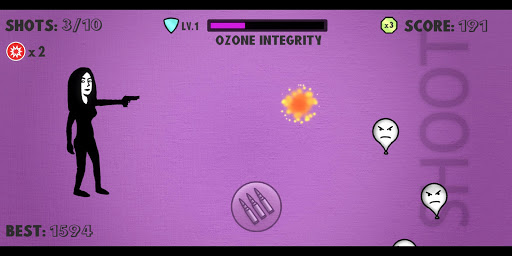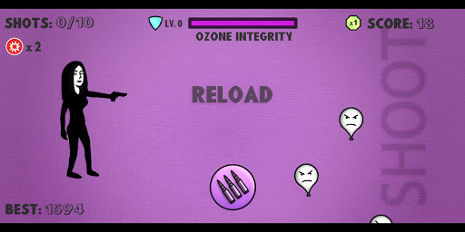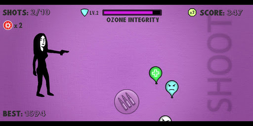 In Balloon Pop Hero, you are the savior of humanity. The evil Balloonites showed up to earth and want to destroy our ozone layer in order to weaken us and enslave humanity. There are many different balloon enemies to fight, including some that zig-zag and others that will simply block you from shooting. Luckily, some of the Balloonites are not as evil, and will sacrifice themselves to give you extra ozone, new ammo, power-ups, and annihilators.