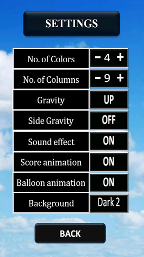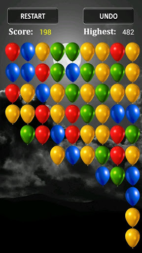 To play this game, you have to tap on two or more adjacent balloons to pop or smash them. The more balloons you pop at once the higher score you would gain. So, think strategically to gather more balloon and smash them! Each type of game setting has its own highest score saved.